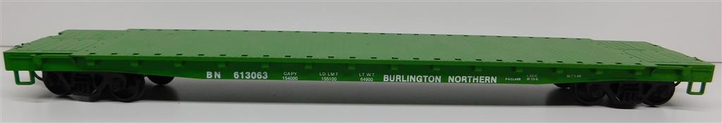 An American 0 scale Burlington Northern box car with Atlas couplings BN 613063, plastic bodied, fine scale wheels, 34cm long, in good condition, no original packaging