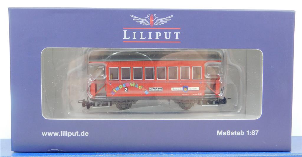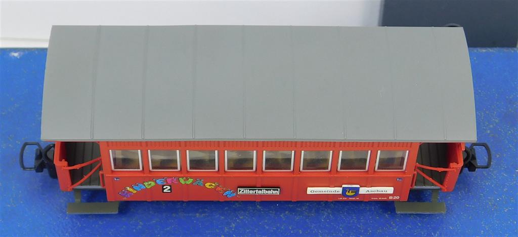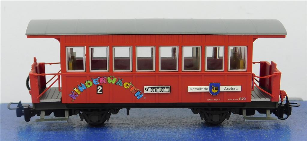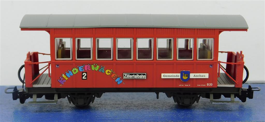 European Narrow Gauge: Liliput L344357 H0e Zillertalbahn in Austria 4 wheel coach type B number 20 "Gemeinde Aschau", Kinderwagen