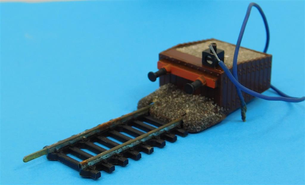 A BTTB TT Buffer Stop with non-working light, rusty track, bulb does not work, no original box.