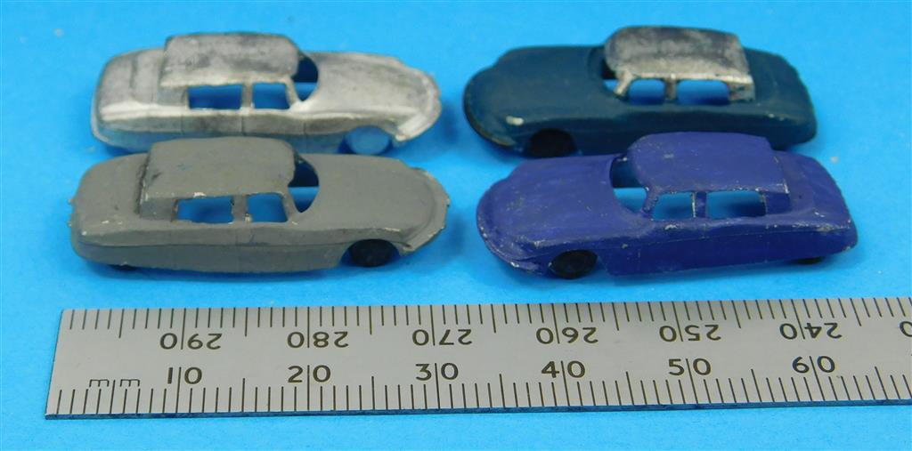 4 White Metal TT 1:120 scale Citroen DS21 cars, unglazed, some unpainted, make unknown, no original box