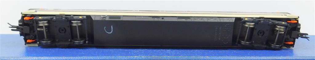 A Hornby TT:120 HST coach B with strange added black stripes (C), repaint candidate, no original box, marked with letter C on the underside in chinagraph pencil for identification purposes, easily cleaned off with a damp cloth