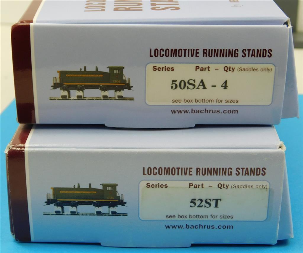 A Bachrus 50SA-4/52ST H0/OO scale loco running stand base and 4 runners, in very good condition, supplied in the original boxes with terse instructions