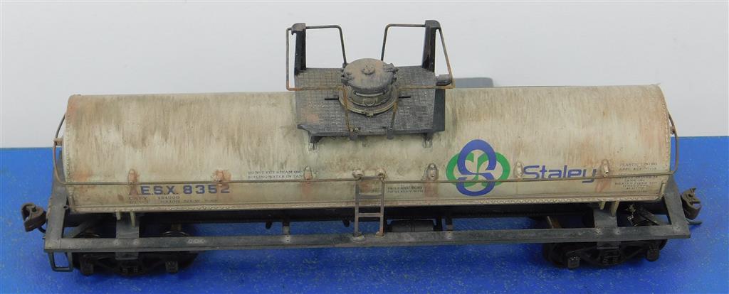 A Staley tank car with Kadee type couplings missing springs, in fair condition, no original box