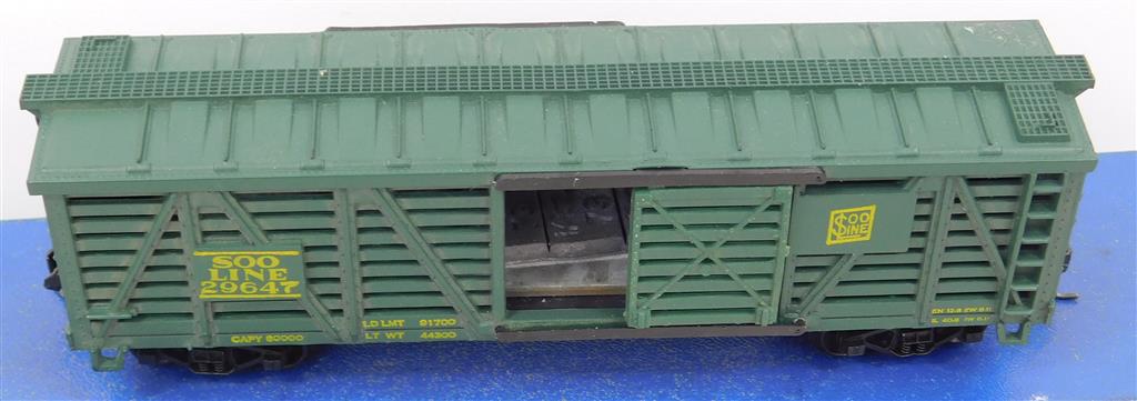 A Life-Like H0 scale Soo Line stock car 29647 with Kadee couplings glued to the bogies, missing one coupling spring otherwise in good condition, no original box