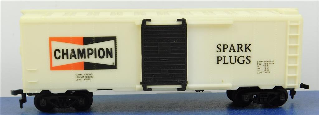 American H0: H0 scale Champion Spark Plugs box car with horn-hook couplings