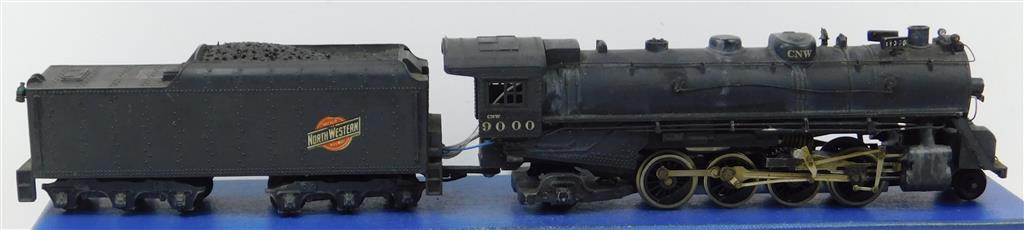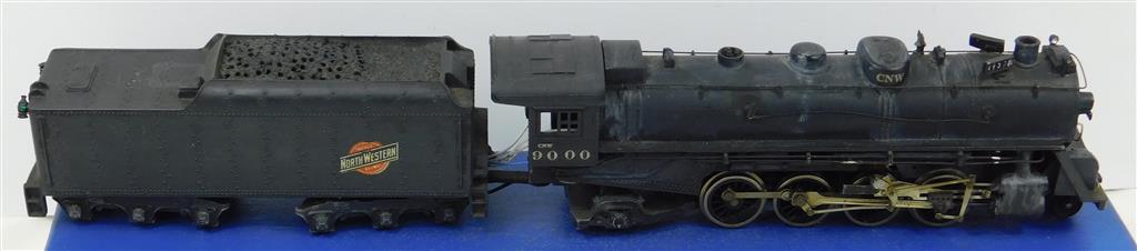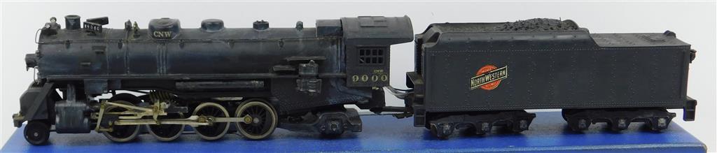 A metal bodied (heavy!) Chicago and North Western 2-8-2 number 9000, make unknown, fitted with a Throttle-up DCC chip set to code 3, reluctant runner on DCC in the wrong direction, directional headlight, does not run on DC, supplied in a Rivarossi box, repaint candidate, couplings need replacing, sold as a project