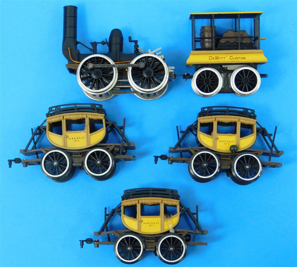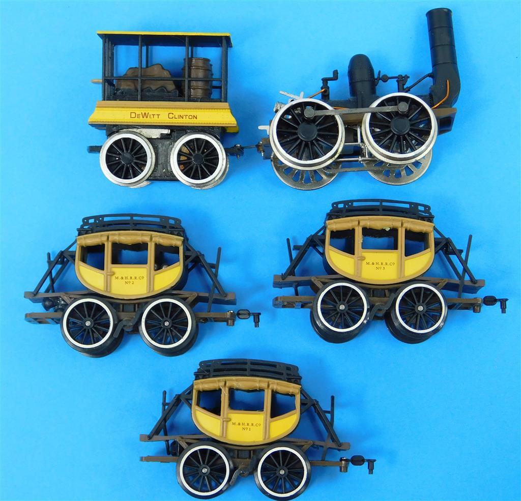 American H0: Bachmann H0 scale De Witt Clinton 0-4-0 loco and 3 coaches