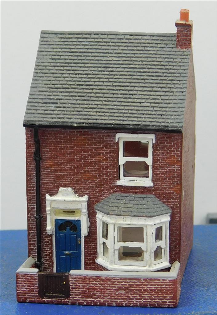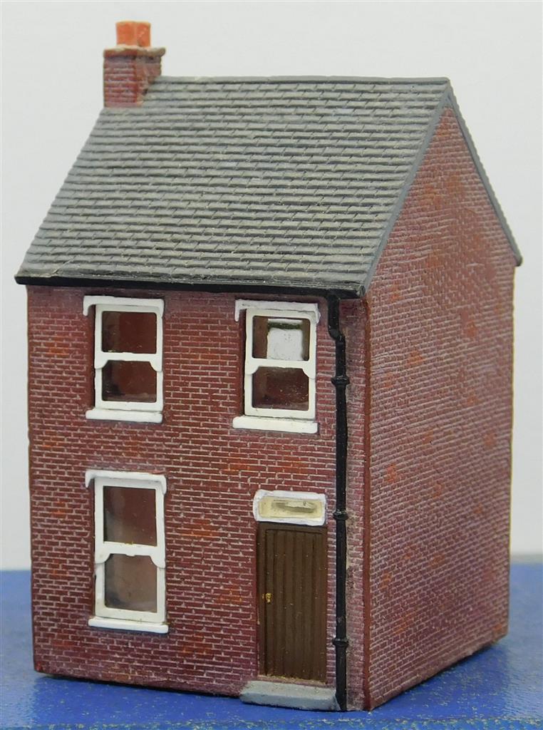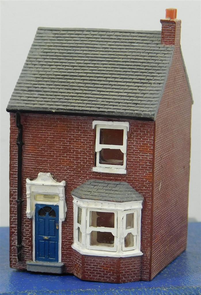 A Hornby N gauge Lyddle End terraced house with door on left side and front garden, in good used condition, no original box