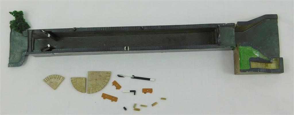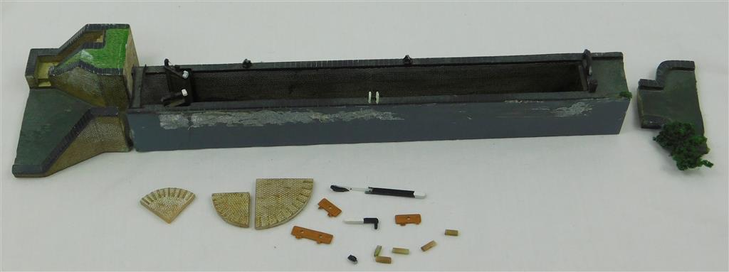 A Hornby N gauge Lyddle End canal lock, 3 parts plus some small parts that need attention, as removed from a layout, in fair used condition, no original box