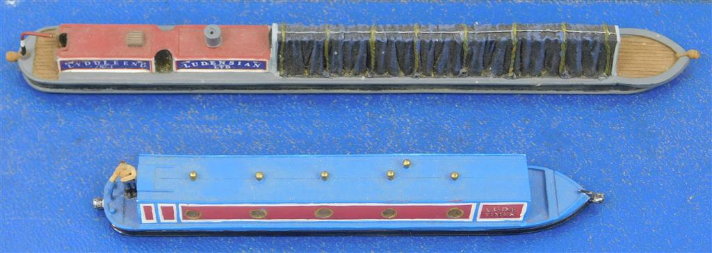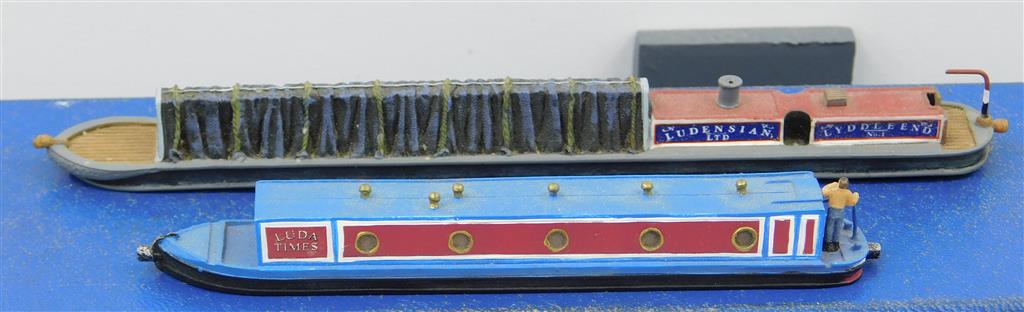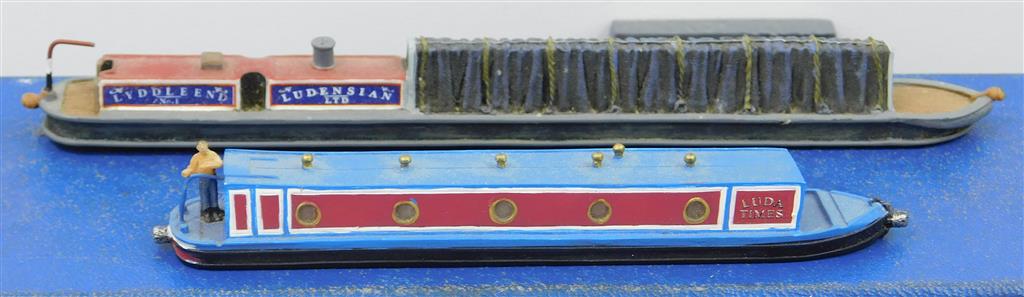 2 Hornby N gauge Lyddle End narrow boats, Ludensian and Luda Times, in good used condition, no original box