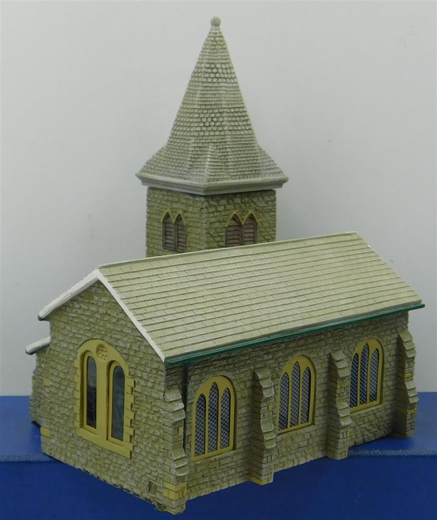 A Hornby N gauge Lyddle End Stone Church, as removed from a layout, in good used condition, no original box