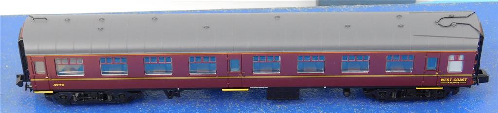 A Graham Farish N gauge West Coach Railway Mk1 2nd class coach 4973, in good condition, no original box