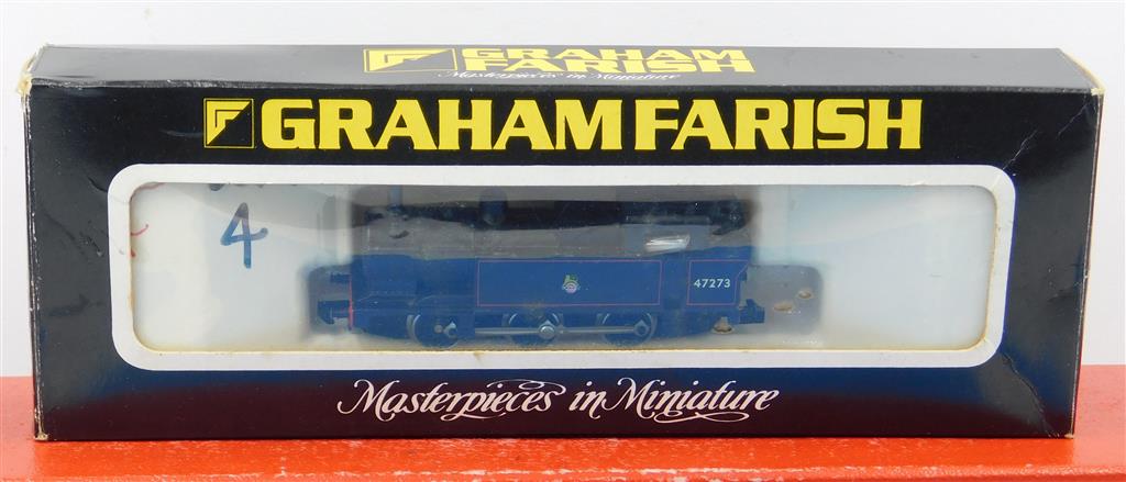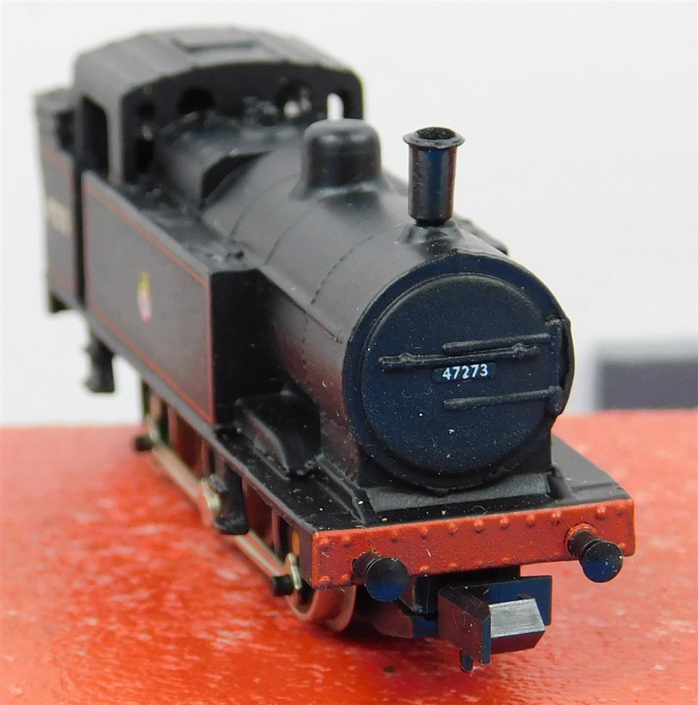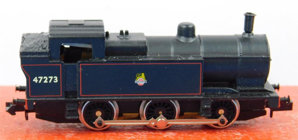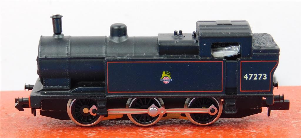 A Graham Farish N gauge 0-6-0T 47273, hard-wired DCC chip only works on DCC, do not use on DC as it has been wired with a common connection between the motor and pickups, use on DC will blow the DCC chip, for DC use it'll need re-wiring, in good cosmetic condition, supplied in an original box