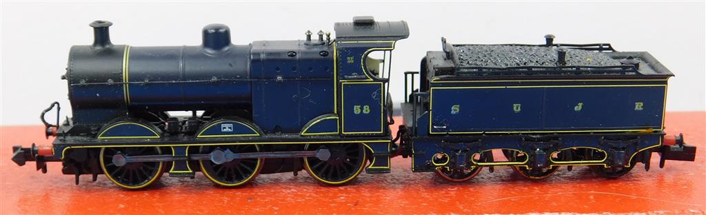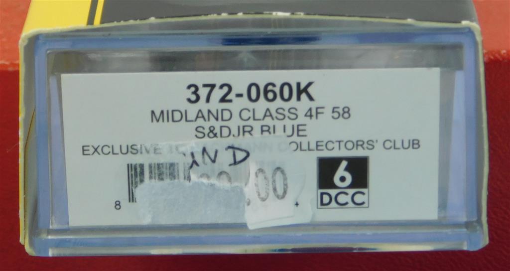 A Graham Farish 372-060K N gauge S&DR 4F 0-6-0 58, DCC sound fitted, reluctant runner on DCC, does nothing on DC, tender needs to be held on the track to run so suspect needs a thorough electrical clean or there is an issue with the DCC chip, in good cosmetic condition but needs a clean, supplied in the original box