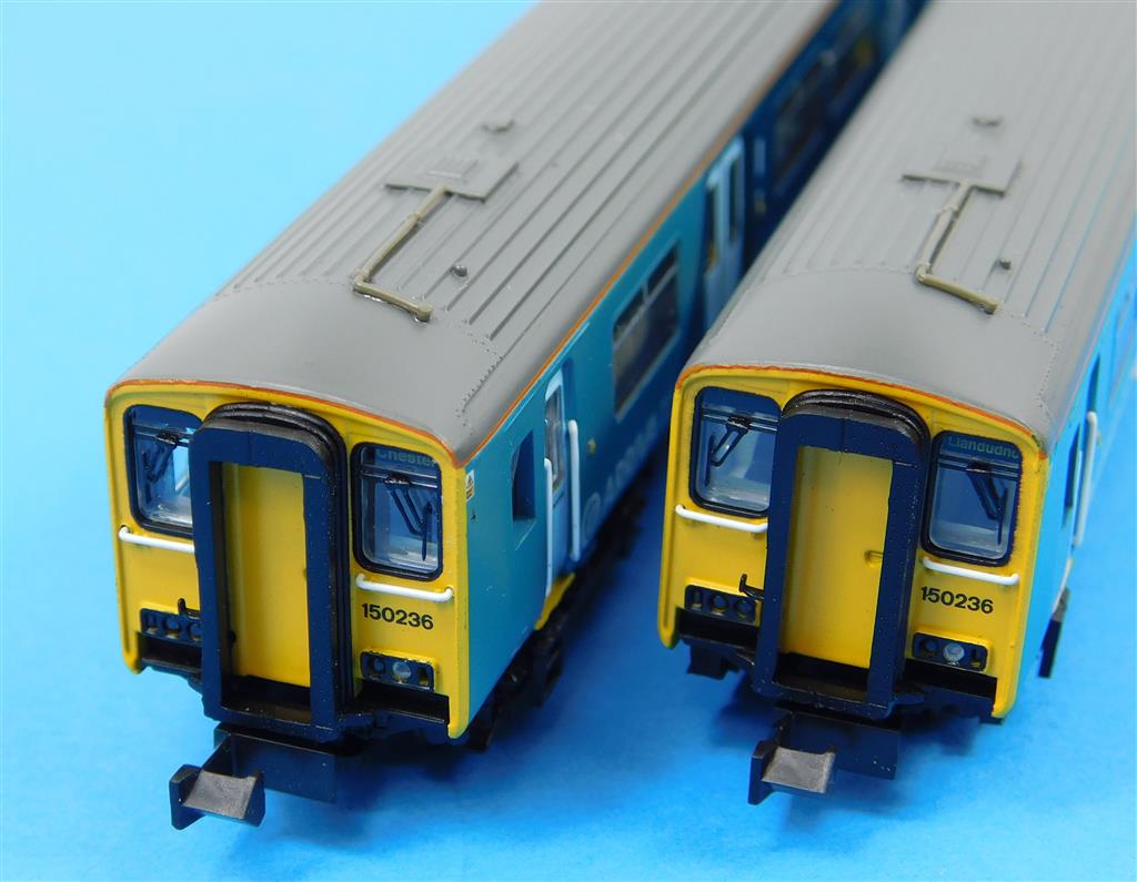 British N gauge: Graham Farish by Bachmann N gauge Arriva Trains Wales class 150 2 car DMU number 150236, good runner