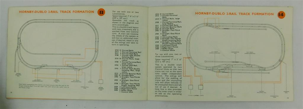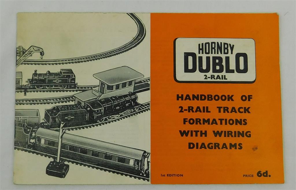 A Hornby Dublo 2 rail track handbook, 1st edition, no annotations but a mark on the cover, some small creases and light wear.