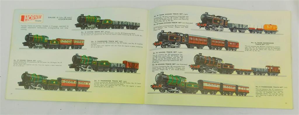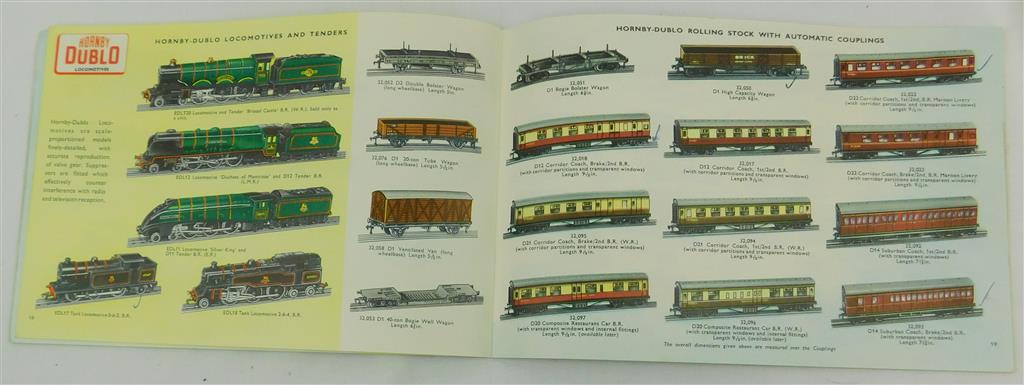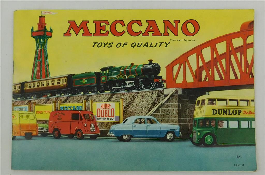 A Hornby Meccano, Dublo, Dinky and 0 gauge catalogue for 1957, some annotations, small creases and light wear.