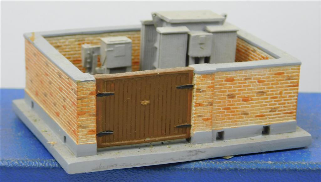 A Hornby Skaledale walled small substation, as removed from a layout, needs a good clean