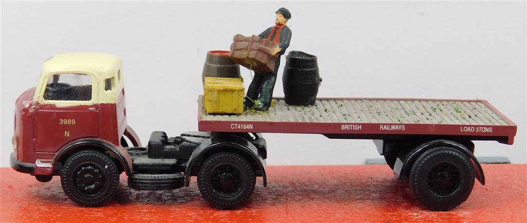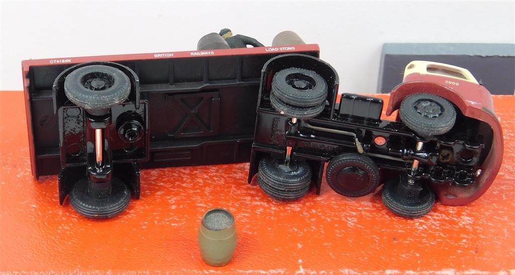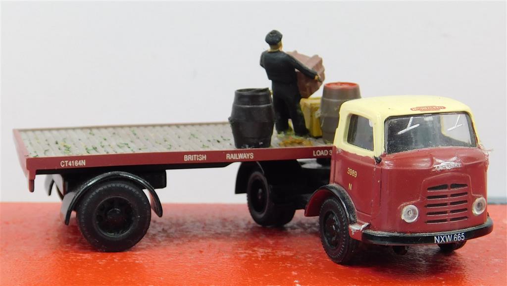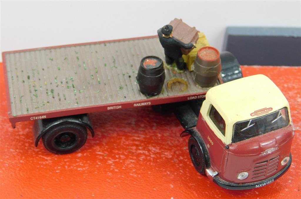 A Base Toys British Railways flatbed lorry NXW665, with one loose barrel, as removed from a layout, no original box