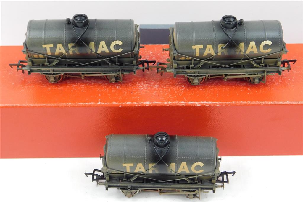 3 Bachmann Tarmac 14 ton tank wagons number 58, 60 and 66, missing one buffer otherwise in good condition, no original boxes