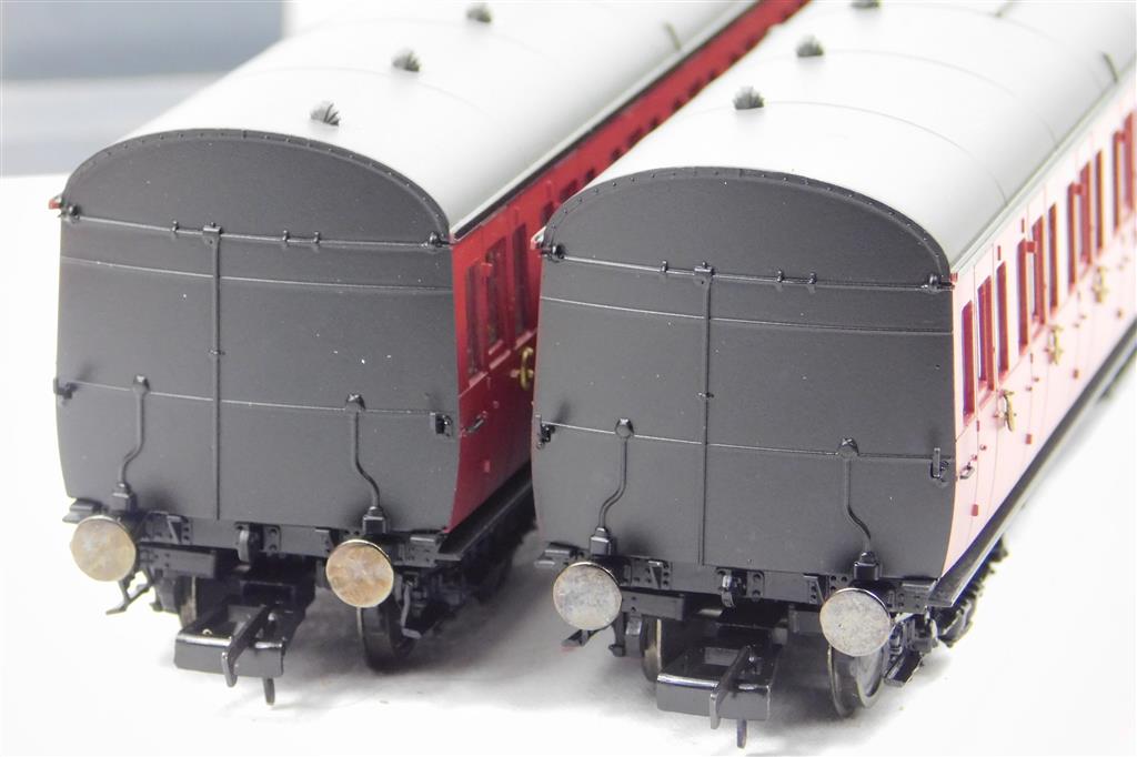 A pair of Hornby BR ex GWR B unit non-corridor coach number W5508W and W4949W, NEM couplings, added dummy tail light, in good condition, no original packaging