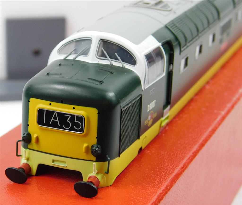A Bachmann 32-525DS Deltic bodyshell D9007 Pinza, loose light channel one end otherwise in very good condition, supplied in the original box with brass nameplates, no body fixing screws