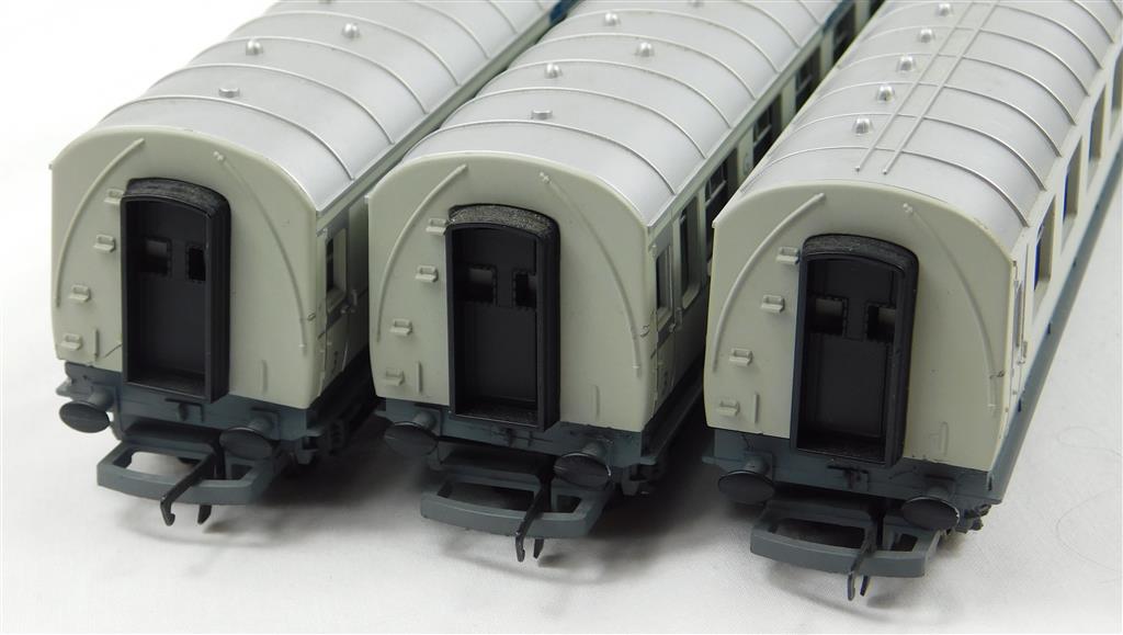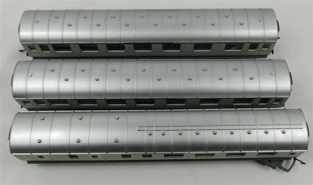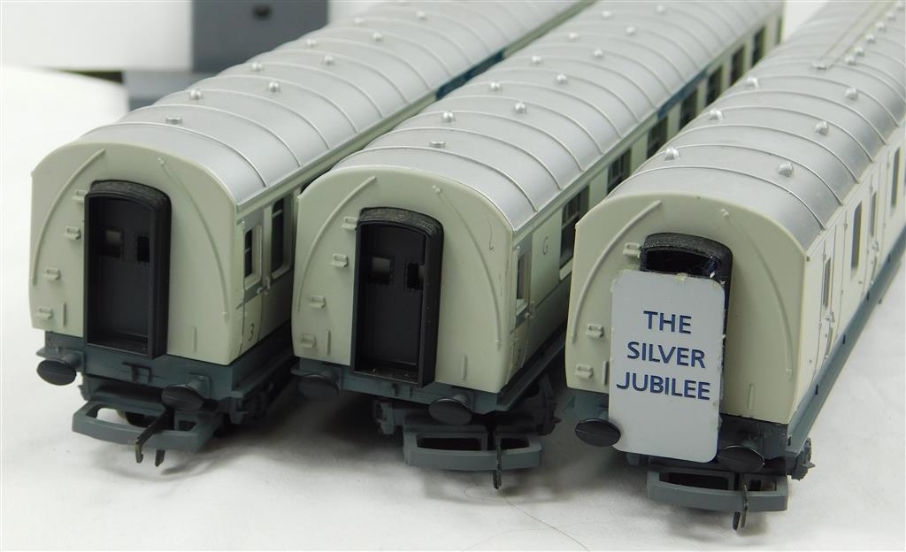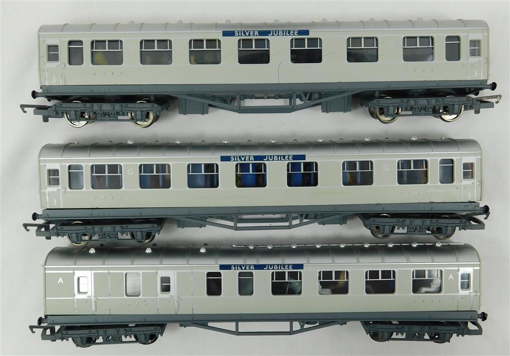 00 Coaches: 3 Hornby LNER Coronation Scot silver coaches with added figures