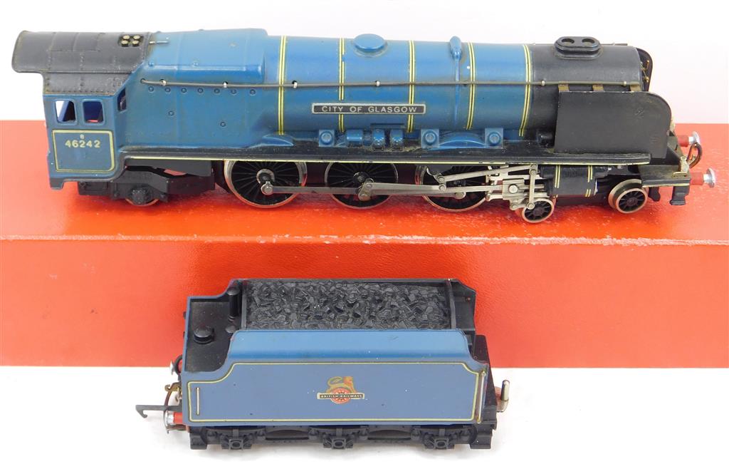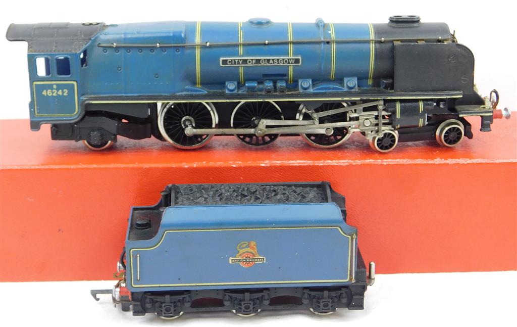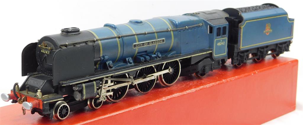 00 Steam Locos: Wrenn BR steam loco City of Glasgow, good runner, small added details and glue spots on tender