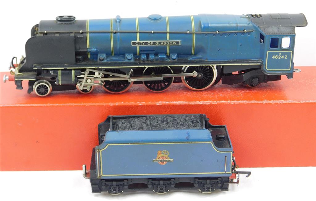 A Wrenn BR steam loco City of Glasgow, good runner, small added details and glue spots on tender otherwise in good used condition, supplied in a tatty original box