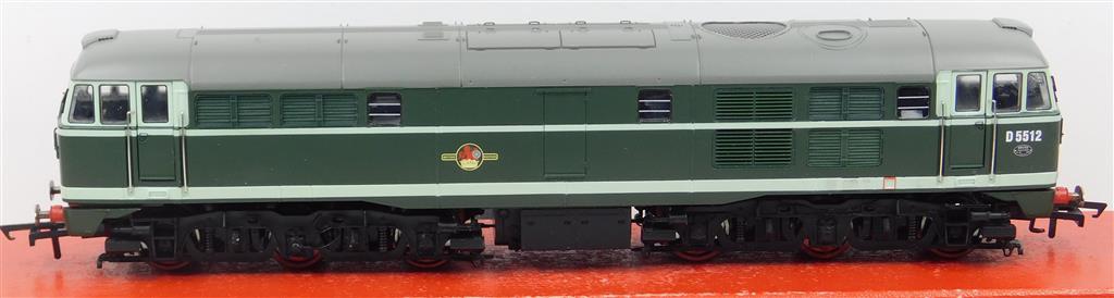 A Hornby BR Brush 2 class 31 diesel loco number D5512, good runner on both DC and DCC with directional head and tail lights but the lights flicker on DC, Uhlenbrock DCC fitted, in good clean condition, supplied in an incomplete original box. I can see no sign of Mazac rot on this model.