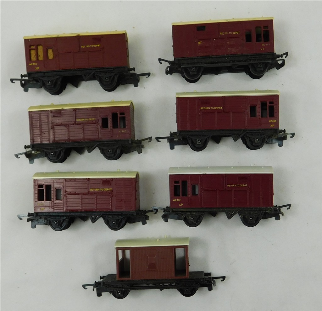 TT Gauge: 5 Tri-ang TT Maroon Horse Boxes + Brake Van