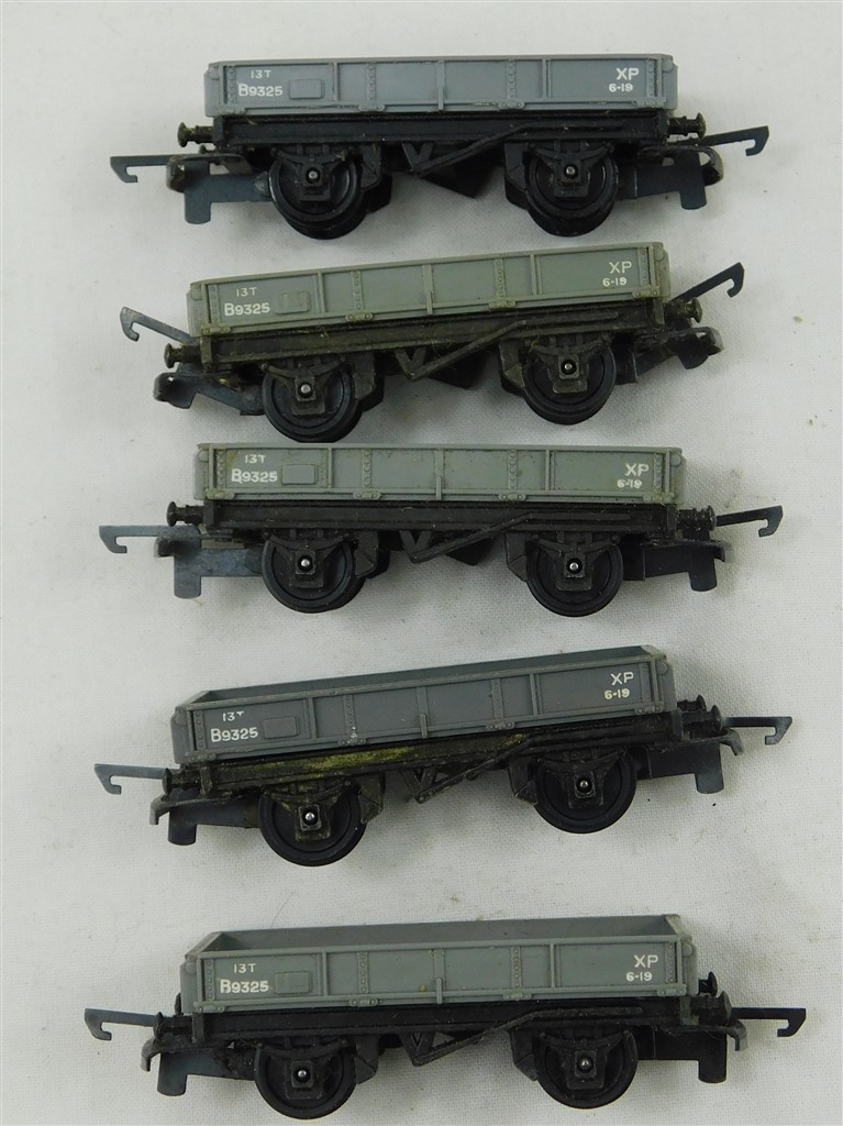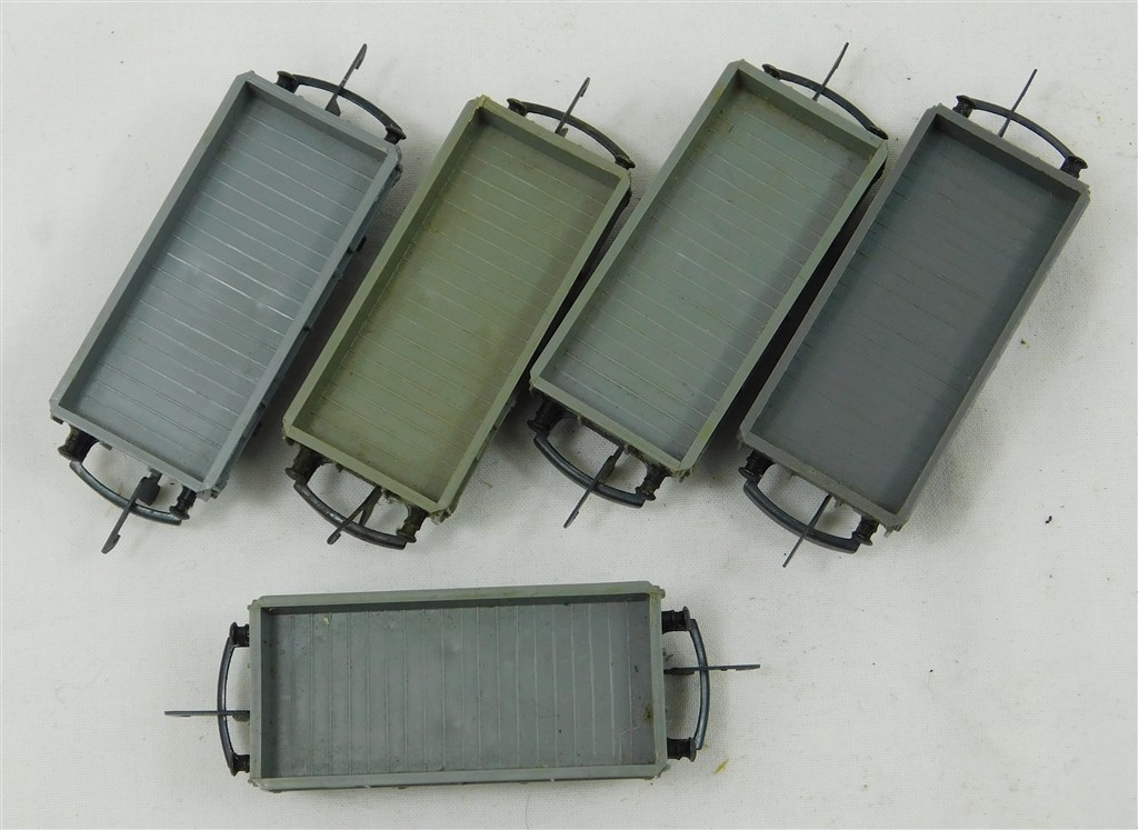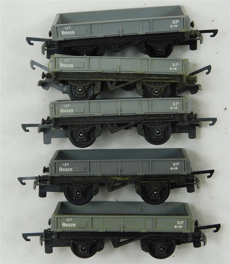 TT Gauge: 5 Tri-ang TT grey lowside wagons