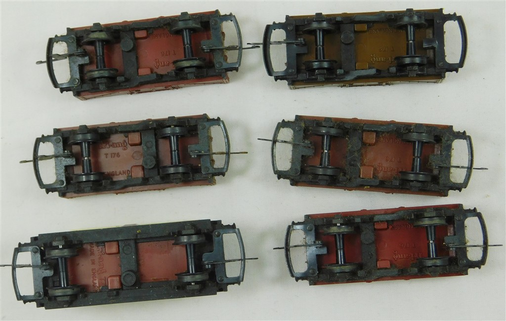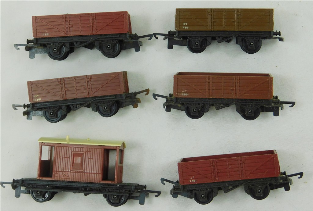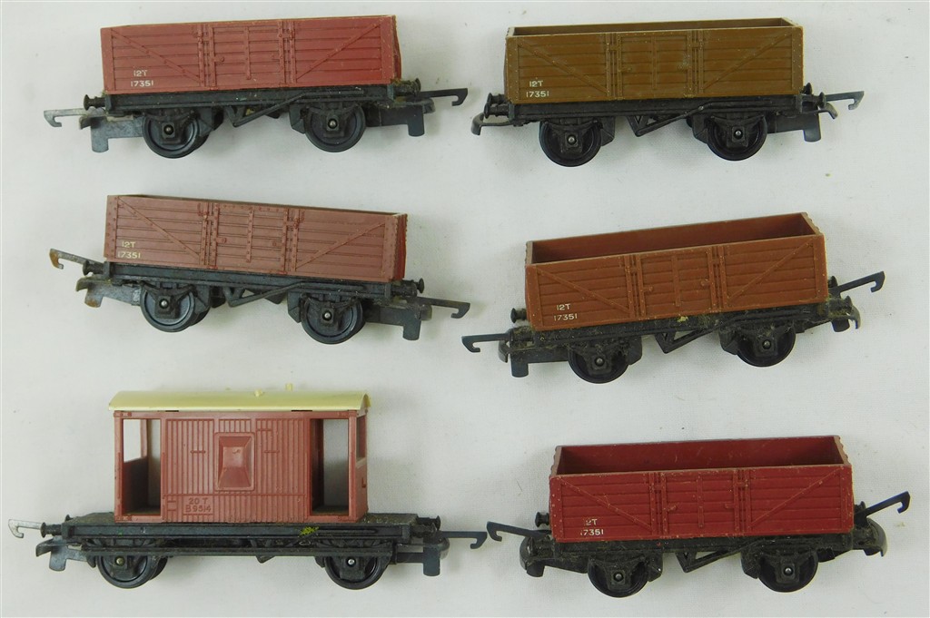TT Gauge: 5 Tri-ang TT brown open wagons (T176) + brake van