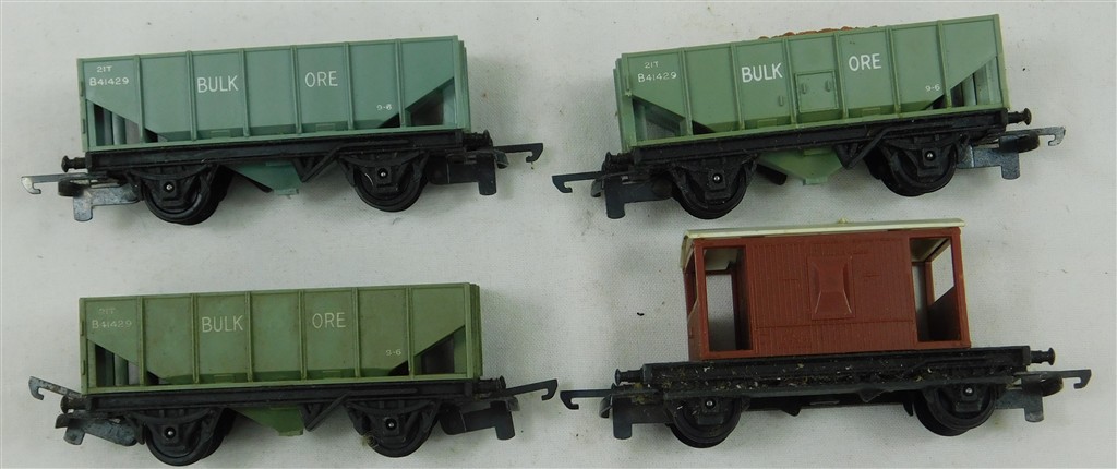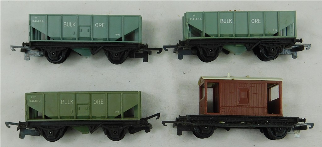 TT Gauge: 3 Tri-ang TT Bulk Ore Wagons + Brake Van