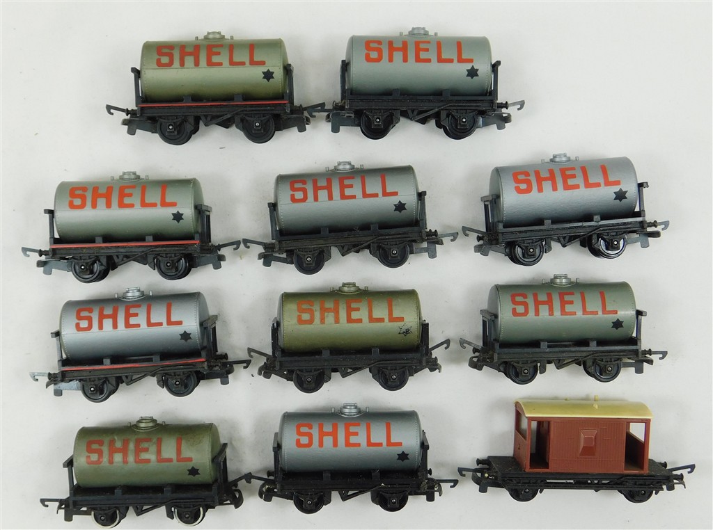 TT Gauge: 10 Tri-ang TT Shell/BP Tank Wagons + Brake Van