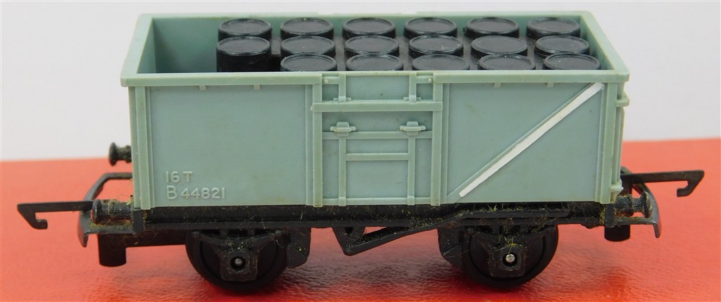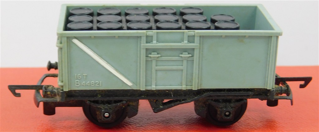 TT Gauge: Tri-ang TT Steel Mineral Wagon + Oil Barrel Load