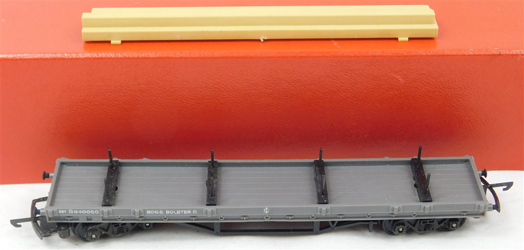A Tri-ang TT T173 bogie bolster wagon with plank load, in good condition, with original box