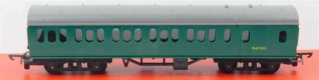 TT Gauge: Tri-ang TT T131 Green Suburban Brake Coach, rounded windows