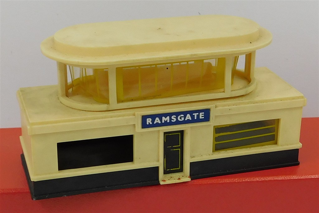 A Tri-ang TT Signal Box "Ramsgate", loose warped glazing, in fair condition