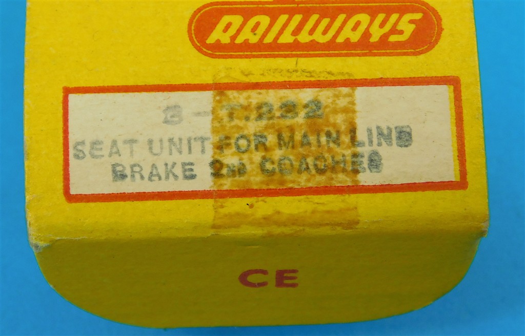 A Tri-ang TT T232 pair of seat units for mainline brake coaches, in good condition, supplied in the original box