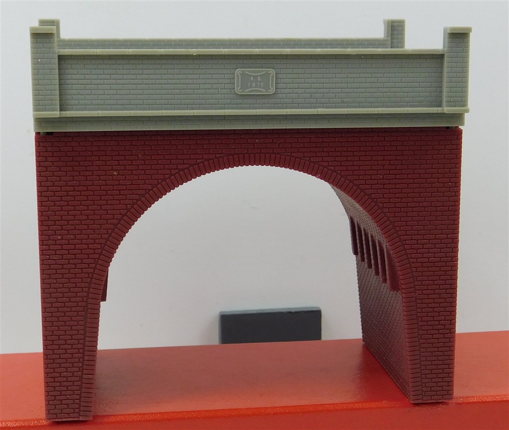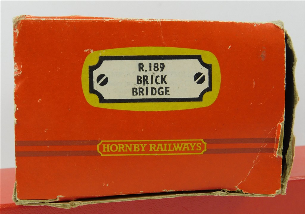 A Hornby 1980s production single arch brick bridge, in good condition, supplied in a tatty original box