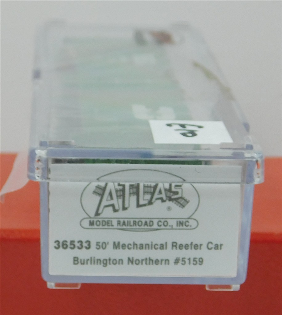 An Atlas N gauge 36533 50 Foot Mechanical Reefer Car - Burlington Northern #5159 in very good condition, supplied in the original box.