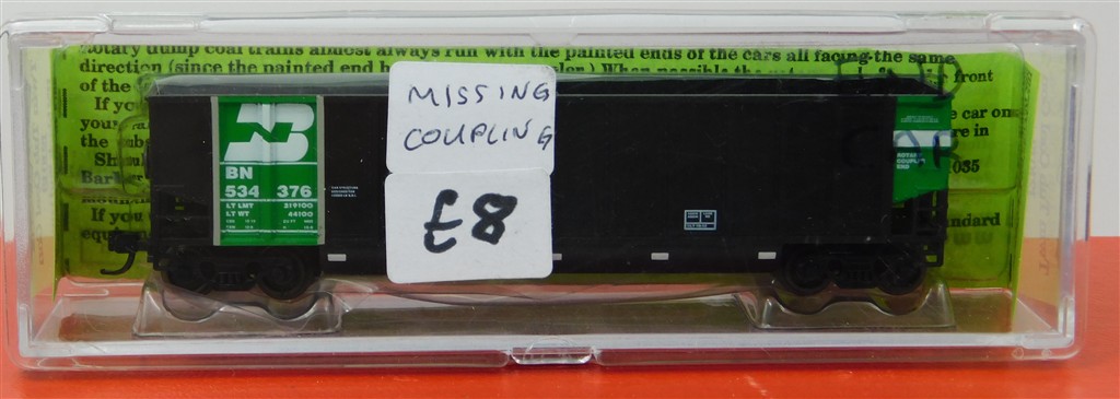 American N: Deluxe Twin Tub Coal Gondola Burlington- Missing One Coupling
