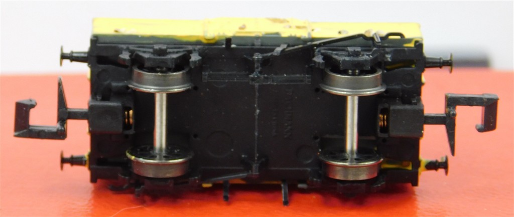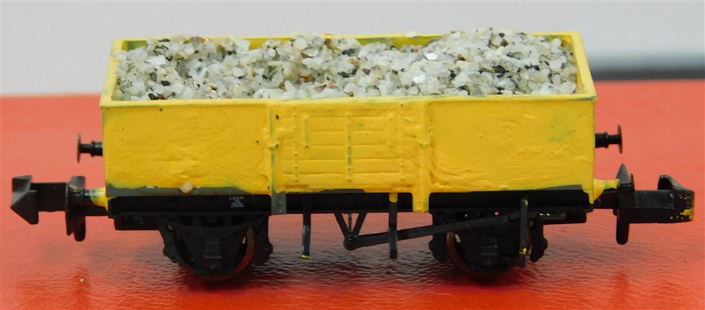 British N gauge: Repainted Graham Farish N gauge yellow open wagon