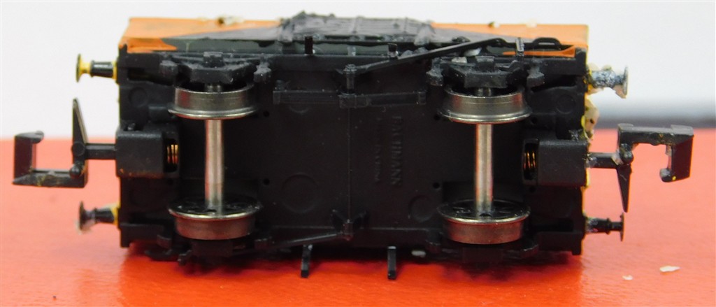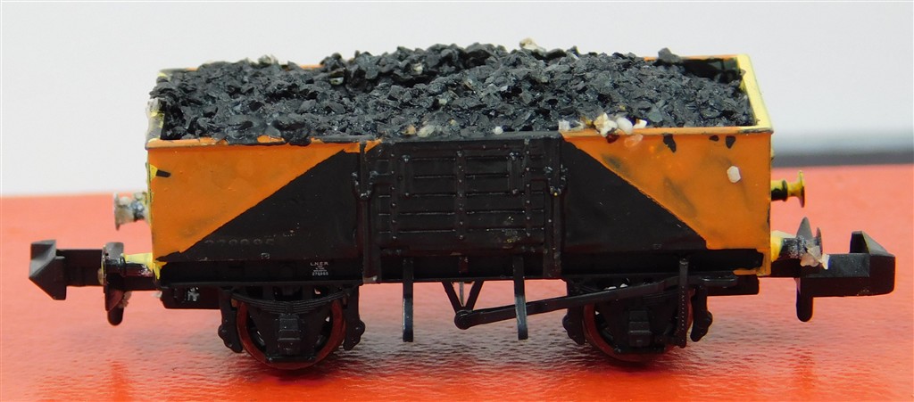 British N gauge: Repainted Graham Farish N gauge black and orange open wagon