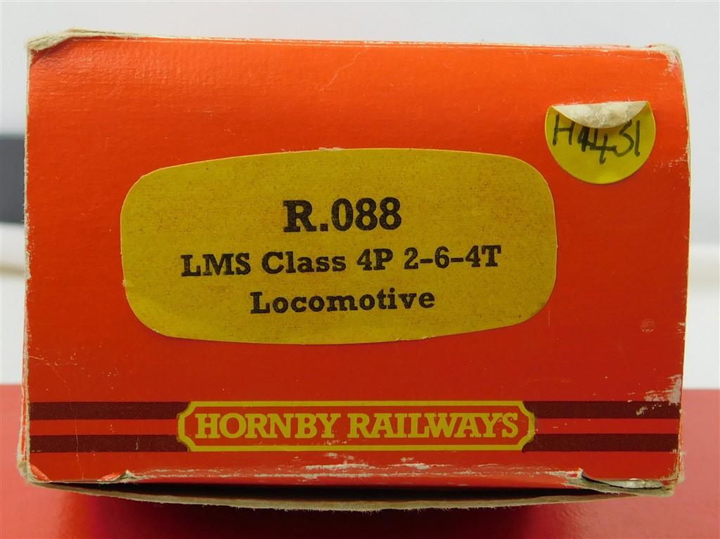 A Hornby R088 LMS Fowler 4P 2345, runs well but jams occasionally, the base plate underneath doesn't latch properly to the chassis so this may need replacement or some better means of attaching creating, some lining loss otherwise in good condition, supplied in the original box