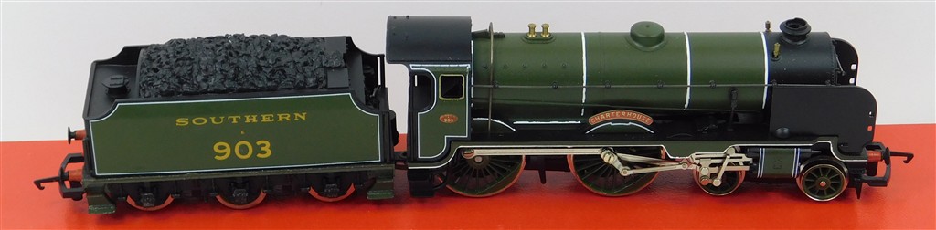 00 Steam Locos: Hornby R057 tender drive Southern Railways Schools class 4-4-0 steam loco number 903 Charterhouse