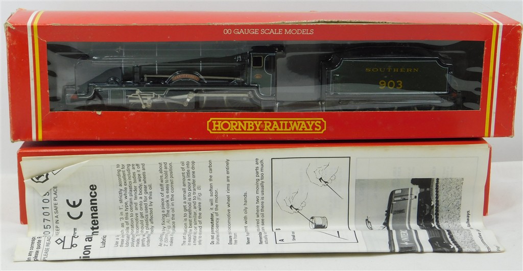 A Hornby R057 tender drive Southern Railways Schools class 4-4-0 steam loco number 903 Charterhouse, good runner, in good clean condition, supplied in the original box.