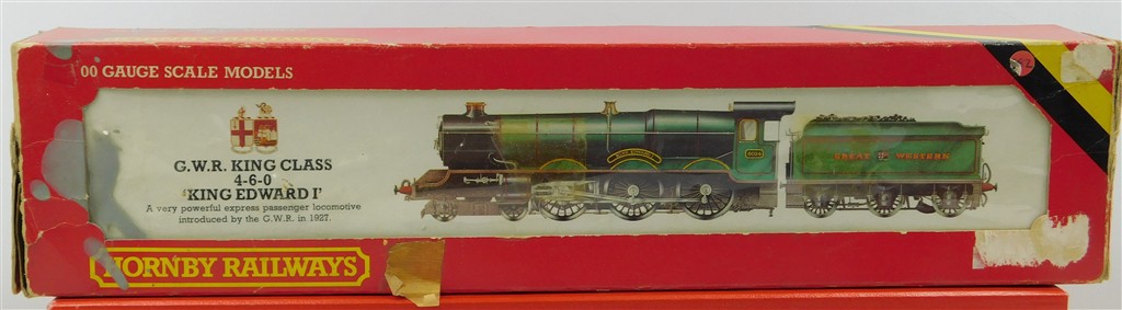 A Hornby R078 tender drive GWR King 4-6-0 steam loco number 6024 King Edward I, good runner, in good condition, original version without daylight under the boiler, supplied in the tatty original box.