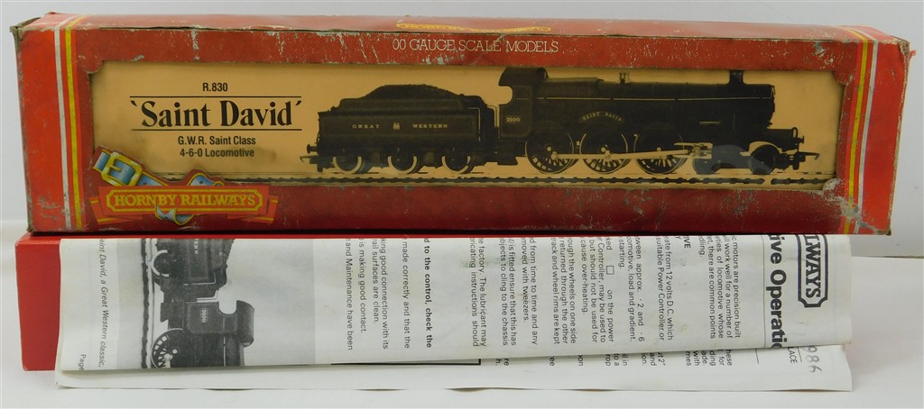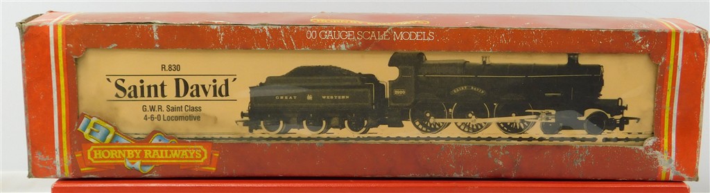 A Hornby R830 tender drive GWR Saint 4-6-0 steam loco number 2920 Saint David, good runner, in good condition, supplied in the tatty original box.
